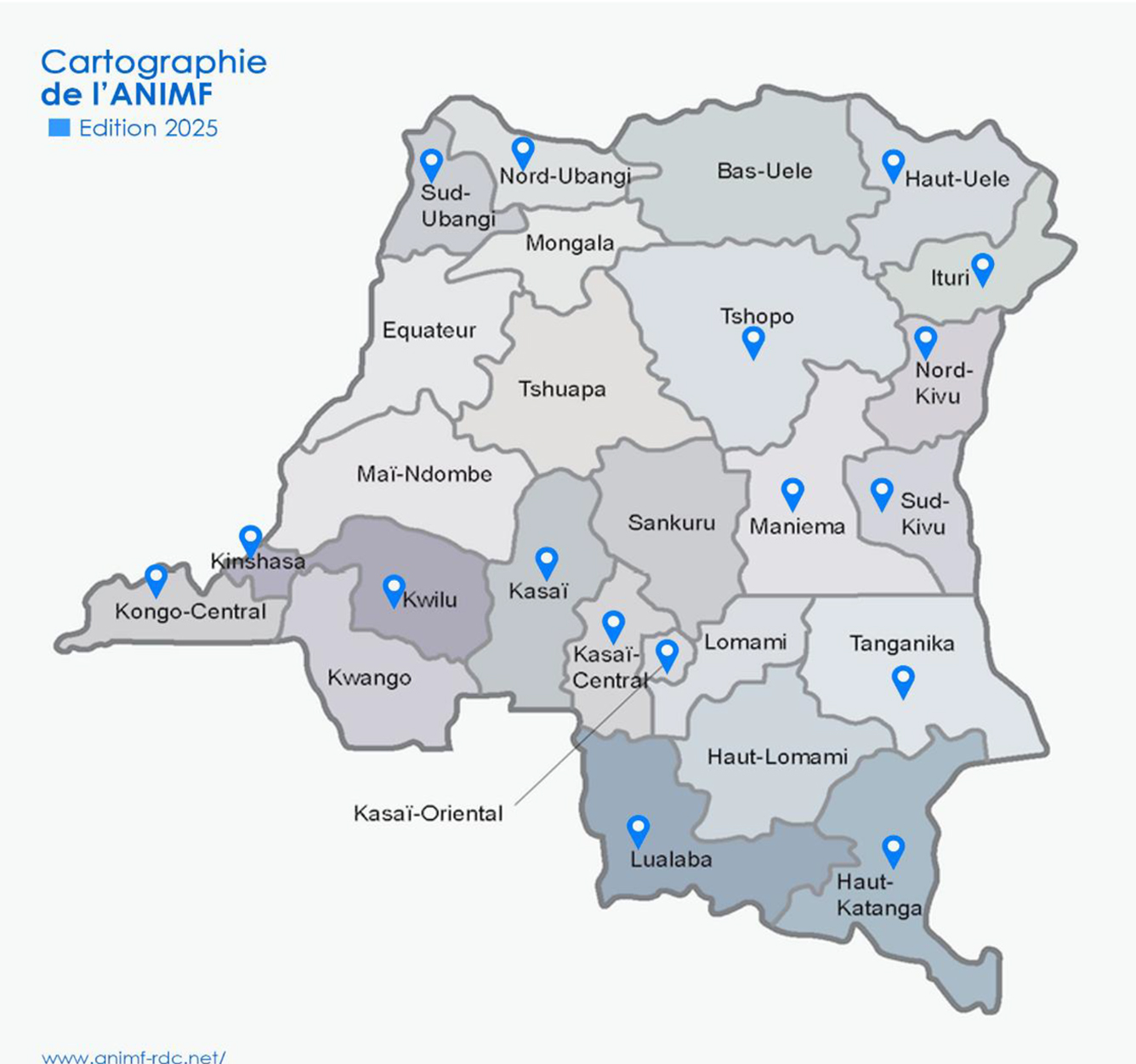 L'Association Nationale des Institutions de Microfinance (ANIMF) en République Démocratique du Congo (RDC) présente sa cartographie géographique, ...